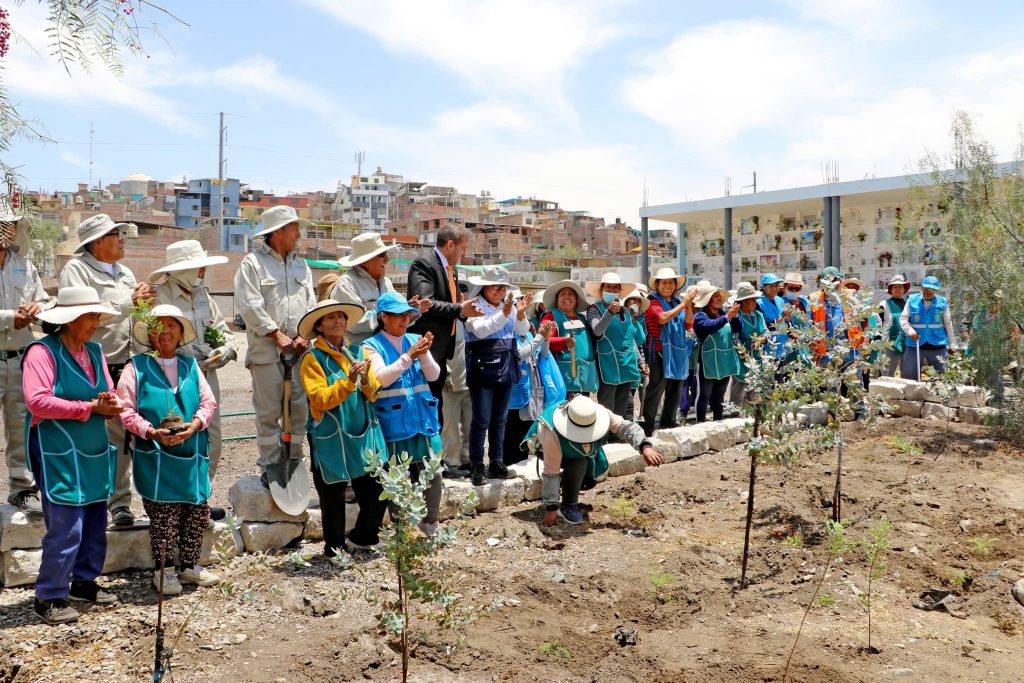 Pero su labor va más allá del trabajo informal. Ustedes las verán regando las plantas, barriendo tumbas, recogiendo flores secas. Estas mujeres se han vuelto aliadas fundamentales de la administración del cementerio: en recientes campañas de reforestación del recinto participaron más de 60 “aguateras”, junto al personal de mantenimiento, para convertir el cementerio en un espacio más ecológico y vivo. En un recinto que data de 1833 —cuando se inauguró con el entierro del prócer arequipeño Mariano Melgar— y ubicado en el distrito de José Luis Bustamante y Rivero, ellas han tomado una especie de custodia afectiva, como si el lugar las hubiera adoptado.