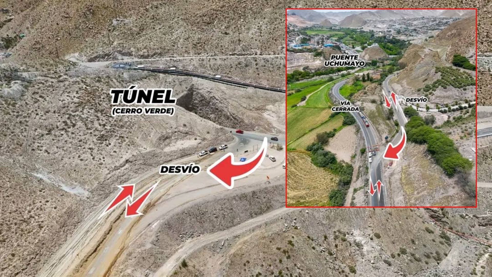 La nueva ruta desde el túnel de Cerro Verde busca aliviar el colapso vehicular tras la clausura del puente; el transporte de carga pesada mantendrá su recorrido habitual por la zona minera.
